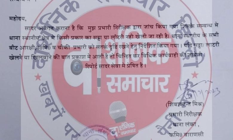 इस संबंध में इंस्पेक्टर लंका शिवाकांत मिश्रा द्वारा प्रेषित आख्या में कहा गया है कि उन्होंने मामले की जांच की और पाया कि थाना स्थानीय क्षेत्र में किसी प्रकार का सट्टा या लॉटरी नहीं खेली जा रही है. सभी पुलिसवालों को सतर्क दृष्टि रखने को कहा गया है और शिकायत आएगी तो कार्रवाई की जाएगी.