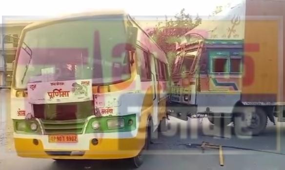 कंटेनर ने बस को मारी टक्कर, एक घायल