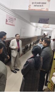 पुस्तकालय परिसर में पहुँचने पर प्रो. सैनी ने सबसे पहले भवन निर्माण सामग्री की गुणवत्ता का आकलन किया। इसके बाद उन्होंने औपचारिक रूप से पुस्तकालय में प्रवेश किया और अपने दौरे की शुरुआत पुस्तकालय कार्यालय से की, जहाँ उन्होंने अभिलेख प्रबंधन प्रणाली और उसके संचालन की संक्षिप्त समीक्षा की। तत्पश्चात वे पुस्तकालय बोर्ड कक्ष में गए, जहाँ नवीनीकरण कार्य प्रगति पर है। उन्होंने गुणवत्ता सुधार और कार्य को समय पर पूरा करने के महत्व पर बल दिया।