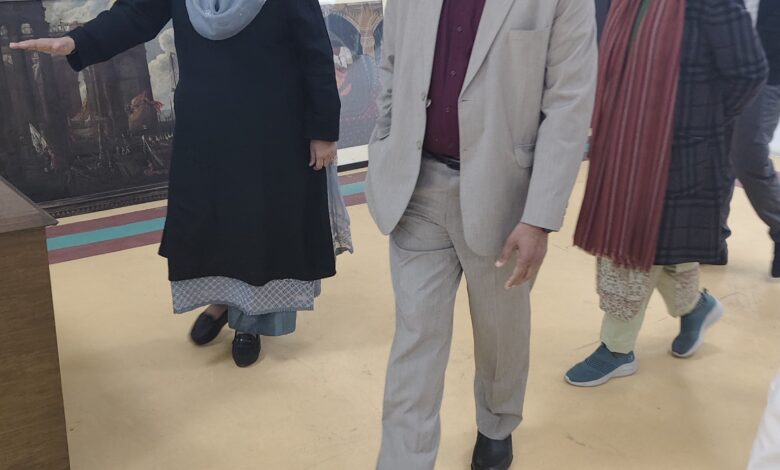 इसके बाद कुलपति ने राधाकमल मुखर्जी कला दीर्घा और संग्रहालय का दौरा किया, जहाँ उन्होंने प्रख्यात प्राचीन और समकालीन कलाकारों की चित्रकला संग्रह की सराहना की तथा चीनी मिट्टी के बर्तनों के प्रदर्शन की प्रशंसा की। उन्होंने भारत के संविधान की मूल प्रति भी देखी और उल्लेख किया कि देश में केवल आठ मूल प्रतियाँ हैं, जिनमें से एक इस संग्रहालय में संरक्षित है। इस अवसर पर उन्होंने सुझाव दिया कि प्रत्येक चित्र और कलाकृति के नीचे विवरणात्मक नोट्स जोड़े जाएँ ताकि दीर्घा अधिक जानकारीपूर्ण और आगंतुकों के लिए उपयोगी बन सके।