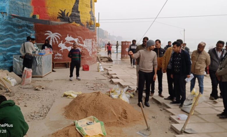 वाराणसी:- नगर आयुक्त हिमांशु नागपाल ने आज गंगा तट के प्रमुख घाटों पर व्यापक निरीक्षण करते हुए स्पष्ट शब्दों में कहा कि घाटों की स्वच्छता, सौंदर्य और अनुशासन से किसी भी स्तर पर समझौता नहीं किया जाएगा। नगर आयुक्त ने नमो घाट से लेकर मणिकर्णिका घाट तक लगभग सभी प्रमुख घाटों का स्थलीय निरीक्षण कर साफ-सफाई, अतिक्रमण, अवैध गतिविधियों और चल रहे विकास कार्यों का अवलोकन किया। निरीक्षण के दौरान नगर आयुक्त ने घाटों पर किसी भी प्रकार के अतिक्रमण, अवैध गुमटी, दुकान संचालन, नाव निर्माण से संबंधित सामग्री, स्क्रैप एवं लकड़ी के अवैध जमाव को तत्काल हटाने के निर्देश दिए। घाटों की दीवारों को पान-पीक से गंदा किए जाने पर नाराजगी व्यक्त करते हुए उन्होंने संबंधित स्थलों की सफाई कर वॉल पेंटिंग कराए जाने का निर्देश दिया।