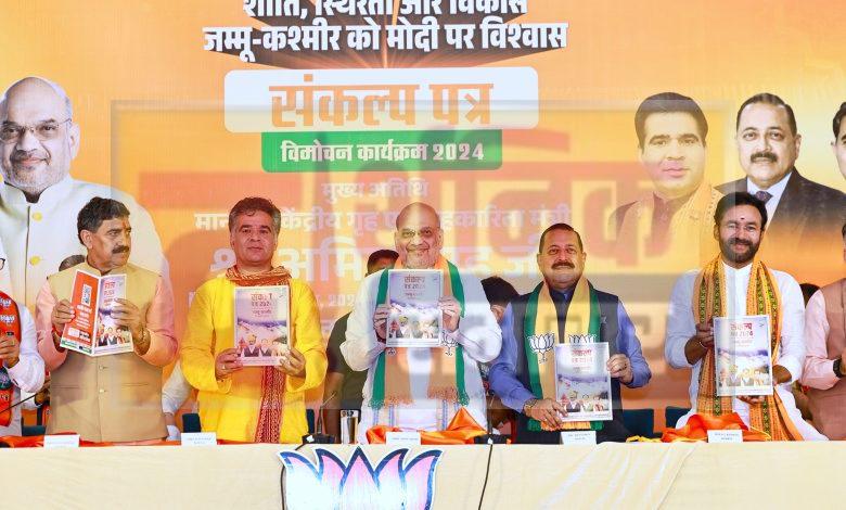 जम्मू-कश्मीर विधानसभा चुनाव 2024;घर की एक महिला को सालाना 18 हजार;जम्मू-श्रीनगर में मेट्रो ट्रेन;बीजेपी के ‘संकल्प पत्र’ – अमित शाह