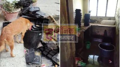 जिन डिस्पोजल प्लेट्स को चाटकर छोड़ गए कुत्ते,उसी में शिक्षकों को खिलाया जा रहा खाना –