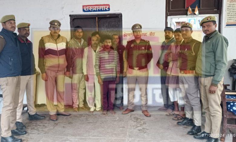 पुलिस अधीक्षक अंकुर अग्रवाल के निर्देशन में जनपद में अपराध तथा अपराधियों पर नियंत्रण लगाये जाने हेतु चलाये जा रहे अभियान के क्रम में थाना कोतवाली नगर पुलिस द्वारा दबिश देकर जुआ खेल रहे 07 अभियुक्तों को गिरफ्तार किया गया है। थाना कोतवाली नगर पुलिस द्वारा मुखबिर की सूचना पर अभियुक्तों को ग्राम तिंदवारा के बगना पुरवा में प्रधान संतराम के घर के पीछे से गिरफ्तार किया गया है। अभियुक्तों के विरुद्ध मु0अ0सं0 150/2024 धारा 13G एक्ट का अभियोग पंजीकृत कर आवश्यक विधिक कार्यवाही की जा रही है।