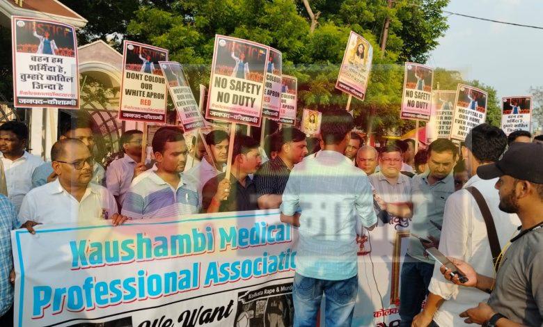 कौशाम्बी में डॉक्टरों ने किया प्रदर्शन;हाथ में बैनर लेकर बोले- नो-सेफ़्टी नो-ड्यूटी,कोलकाता की महिला डॉक्टर के लिए की न्याय की मांग –
