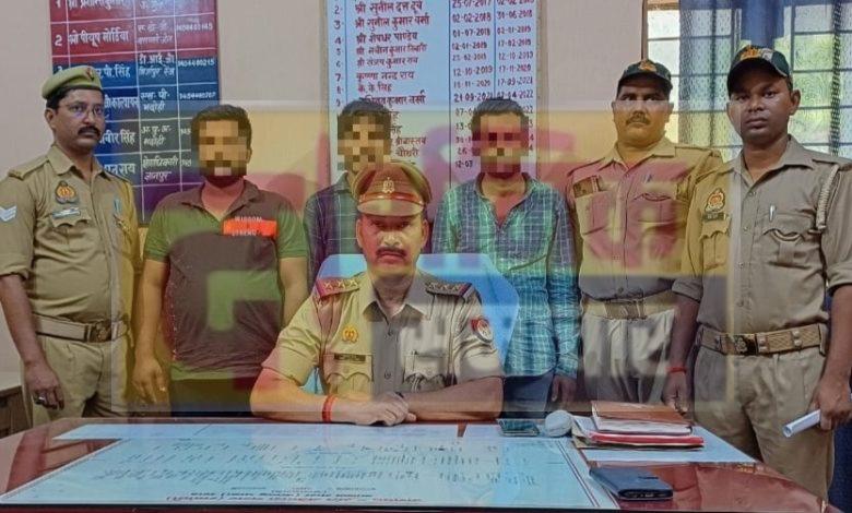 भदोही में चुस्त-दुरुस्त कानून व्यवस्था के दृष्टिगत डॉ0 मीनाक्षी कात्यायन, पुलिस अधीक्षक द्वारा अपराधों की रोकथाम व अपराधियों के विरुद्ध प्रभावी कार्यवाही हेतु चलाए जा रहे विशेष अभियान के क्रम में रात्रि में स्वाट व थाना गोपीगंज पुलिस की संयुक्त टीम द्वारा रेलवे स्टेशन ज्ञानपुर रोड के पास से जनपद सहित विभिन्न जनपदों में सवारी यात्रियों को जहरखुरानी का शिकार बनाकर सामान चोरी करने वाले गिरोह के *तीन शातिर अभियुक्तों* 1.रामदयाल मिश्रा उर्फ अमन मिश्रा पुत्र अवधेश मिश्रा निवासी भोरकला थाना मिर्जामुराद जनपद वाराणसी ग्रामीण 2.उमेश दुबे पुत्र स्व0 संतोष दुबे निवासी तिवारीपुर थाना कछवां जनपद मिर्जापुर 3.अवधेश यादव पुत्र श्यामलाल यादव निवासी सोनहर, महुआपट्टी कुकरौठी थाना व जनपद भदोही को गिरफ्तार करने में सफलता प्राप्त हुई है। गिरफ्तारशुदा अभियुक्तों के कब्जे से थाना गोपीगंज व थाना रोहनिया, जनपद वाराणसी अन्तर्गत जहरखुरानी कर यात्रियों का सामान चोरी करने के संबंध में पंजीकृत अभियोगों से सम्बंधित *4,880/- रुपया नगद, 04 अदद मोबाइल फोन तथा एक अदद अवैध तमंचा 12 बोर मय दो अदद जिंदा कारतूस व नशीला पाउडर अल्प्राजोलम 27.61 ग्राम व घटना में प्रयुक्त ऑटो रिक्शा* बरामद किया गया है।