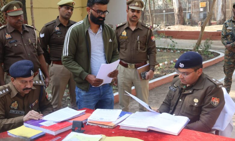 आज जनपद सोनभद्र के समस्त थानों पर थाना समाधान दिवस का व्यापक आयोजन किया गया। इसी क्रम में पुलिस अधीक्षक सोनभद्र श्री अभिषेक वर्मा द्वारा थाना बीजपुर पर उपस्थित होकर फरियादियों की समस्याओं को सुना गया तथा प्राप्त प्रार्थना पत्रों का गंभीरतापूर्वक अवलोकन किया गया।