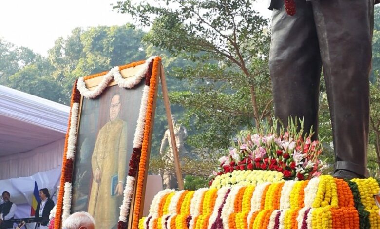 दिल्ली:- संविधान निर्माता डॉ. भीमराव आंबेडकर की आज 69वीं पुण्यतिथि है। इस मौके पर पूरा देश उन्हें याद कर रहा है। प्रधानमंत्री नरेंद्र मोदी, उपराष्ट्रपति सीपी राधाकृष्णन और अन्य नेताओं ने संसद भवन परिसर में डॉ. आंबेडकर की प्रतिमा पर विनम्र श्रद्धांजलि अर्पित की। डॉ. आंबेडकर को याद करते हुए प्रधानमंत्री मोदी ने सोशल मीडिया पोस्ट में लिखा ‘महापरिनिर्वाण दिवस पर डॉ. बाबासाहेब आंबेडकर को याद करते हुए। उनका दूरदर्शी नेतृत्व और न्याय, समानता और संविधान के प्रति अटूट प्रतिबद्धता हमारी राष्ट्रीय यात्रा को राह दिखाती रहेगी। उन्होंने पीढ़ियों को इंसानी गरिमा बनाए रखने और लोकतांत्रिक मूल्यों को मज़बूत करने के लिए प्रेरित किया। उनके आदर्श हमें विकसित भारत बनाने की दिशा में काम करते हुए राह दिखाते रहें।’