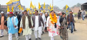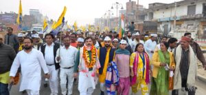 वाराणसी:-    उत्तर प्रदेश में बेरोज़गारी, सामाजिक अन्याय और जनविरोधी नीतियों के खिलाफ आम आदमी पार्टी की “रोज़गार दो–सामाजिक न्याय दो” पदयात्रा के पाँचवें दिन मंगलवार को वाराणसी में जनसमर्थन का सैलाब उमड़ पड़ा। सुबह मौर्या लॉन, जनसा चौराहा से जैसे ही पदयात्रा आगे बढ़ी, ढोल–नगाड़ों, फूलों की वर्षा और गगनभेदी नारों के बीच सांसद संजय सिंह का जोरदार स्वागत किया गया। महिलाओं ने आरती उतारी, बुज़ुर्गों ने आशीर्वाद दिया और बच्चों ने तख्तियों व नारों के साथ पदयात्रा में शामिल होकर माहौल को भावनात्मक जनआंदोलन में बदल दिया।