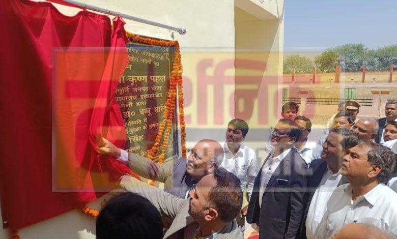 बांदा। वर्षो की प्रतीक्षा के बाद तहसील बबेरू मे सिविल कोर्ट व न्यायालय भवन का उद्घाटन उच्च न्यायालय प्रयागराज के प्रशासनिक न्यायाधीश व जनपद न्यायाधीश ने फीता काटकर किया। कस्बे के नहर पटरी के पास बनी नवनिर्मित सिविल कोर्ट व न्यायालय भवन का उद्घाटन करने के पश्चात उच्च न्यायालय प्रयागराज के प्रशासनिक न्यायाधीश कृष्ण पहल व जिला जज डॉ बब्बू सारंग ने परिसर मे वृक्षारोपण किया और नवनिर्मित भवन का निरीक्षण किया। इसके बाद अधिवक्ता संघ पहुंचकर प्रशासनिक न्यायाधीश ने बबेरू के अधिवक्ताओं की समस्याएं सुनीं तथा इनके शीघ्र समाधान करने का भरोसा दिया। इस अवसर पर सीजेएम भगवानदास गुप्ता, अपर जिला जज निरंजन कुमार, बबेरू बार संघ अध्यक्ष गुलाब यादव, जिला अधिवक्ता संघ अध्यक्ष अशोक दीक्षित, महामंत्री सुनील पाण्डेय, कोषाध्यक्ष रविकरण सिंह, शिवपूजन वर्मा, जयगोपाल गुप्ता, उमाशंकर तिवारी, रामशरण प्रजापति, महेश त्रिपाठी, रणजीत यादव, रामप्रताप वर्मा व बड़ी संख्या मे अधिवक्ता मौजूद रहे। इसके पश्चात प्रशासनिक न्यायाधीश कृष्ण पहल ने जिला अधिवक्ता संघ के कार्यक्रम मे भाग लिया। बार संघ अध्यक्ष अशोक कुमार दीक्षित, महासचिव रामप्रकाश शिवहरे ने बुके देकर स्वागत किया। अधिवक्ता संघ कार्यक्रम को पूर्व अध्यक्ष शंकर सिंह, रामस्वरूप सिंह, राजेश दुबे, आनंद सिन्हा, अशोक त्रिपाठी, रामकृष्ण त्रिपाठी आदि ने संबोधित किया। इस अवसर पर न्यायिक अधिकारी, अधिवक्ता सूर्य प्रकाश, राकेश सिन्हा, अभिसार दीक्षित, पूर्व चेयरमैन राजकुमार राज, ओमप्रकाश गौतम, सत्यदेव त्रिपाठी व बड़ी संख्या मे अधिवक्ता मौजूद रहे।