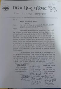 बूचड़खाने को ध्वस्त करने के सम्बन्ध में विहिप ने दिया ज्ञापन