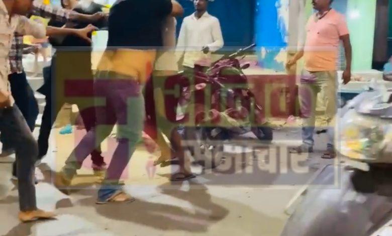 पत्नी और बच्चों को लेकर जा रहे स्कूटी सवार के साथ मनबढो ने किया मारपीट।