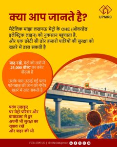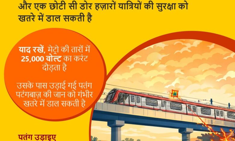 लखनऊ:- यात्री सुरक्षा और मेट्रो सेवाओं के निर्बाध संचालन को ध्यान में रखते हुए लखनऊ मेट्रो ने आमजन से अपील की है कि वे मेट्रो कॉरिडोर के आसपास पतंग उड़ाने से परहेज करें। पूर्व में पतंगबाजी से मेट्रो परिचालन प्रभावित हुआ है, जिससे यात्रियों को असुविधा का सामना करना पड़ा।