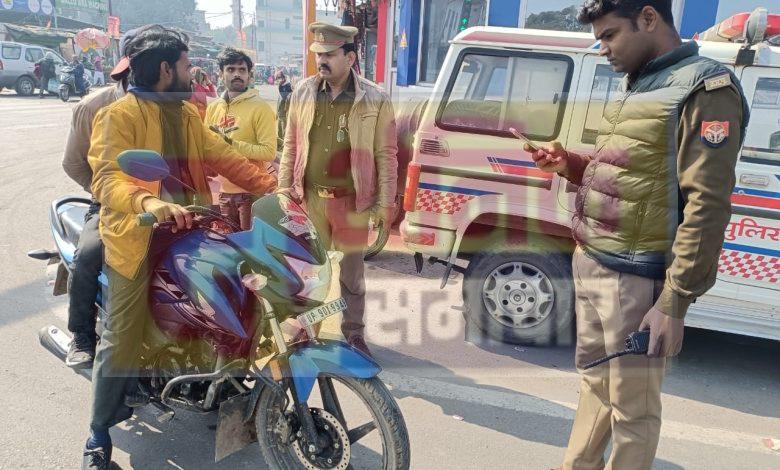बांदा। पुलिस अधीक्षक अंकुर अग्रवाल के निर्देशन व प्रभारी क्षेत्राधिकारी यातायात मोहम्मद जियाउद्दीन अहमद के पर्यवेक्षण में यातायात निरीक्षक राजेश कुमार वर्मा ने शहर के प्रमुख चौराहों महाराणा प्रताप, बाबूलाल चौराहा पर 125 वाहनों का चालान किया। लोगों को यातायात नियमों के बारे में जागरूक किया तथा जो चालक बिना हेलमेट लगाए वाहन चलाते पाये गये उनका चालान किया साथ ही चार पहिया वाहनों को भी चेक किया गया। पुलिस ने सीट बेल्ट के साथ-साथ वाहनों पर चढ़ी हुई काली फिल्मो को तत्काल प्रभाव से निकलवाया और हिदायत के साथ चालानी कार्रवाई की गई। यातायात प्रभारी राजेश कुमार वर्मा के द्वारा यातायात मार्ग के नियमों का पालन न करने वालों को जागरूक किया गया तथा हिदायत दी गई कि हमेशा यातायात नियमों का पालन करें और सुरक्षित यात्रा करें और कहा कि चेकिंग अभियान निरंतर जारी रहेगा। लोग यातायात नियमों का पालन करना सुनिश्चित करें ताकि किसी भी प्रकार की परेशानी का सामना न करना पड़े।