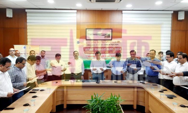 यूपीएमआरसी के प्रबंध निदेशक सुशील कुमार ने आज सतर्कता जागरुकता सप्ताह का शुभारंभ अधिकारियों एवं कर्मचारियों को सत्यनिष्ठा की शपथ दिला कर किया। इस अवसर पर निदेशक वित्त शील कुमार मित्तल, निदेशक कार्य एवं संरचना सी.पी सिंह, निदेशक रोलिंग स्टॉक नवीन कुमार, निदेशक परिचालन श्री प्रशांत मिश्रा एवं मुख्य सतर्कता अधिकारी संतोष मिश्रा भी मौजूद रहे। यूपीएमआरसी के ट्रांसपोर्ट नगर मेट्रो डिपो, कानपुर एवं आगरा मेट्रो परियोजनाओं में भी ईमानदारी की शपथ दिलाई गई।