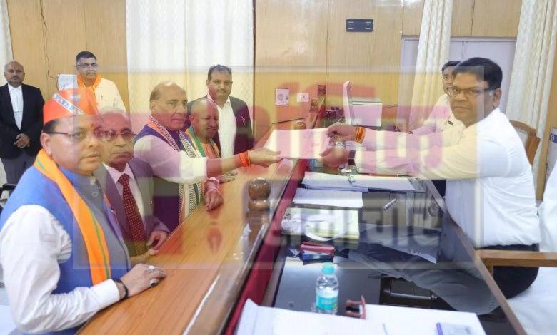यूपी-उत्तराखंड के सीएम की मौजूदगी में राजनाथ सिंह ने किया नामांकन –