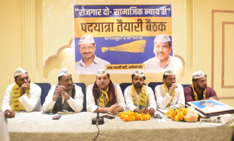 अयोध्या:- आम आदमी पार्टी ने आगामी 31 अक्तूबर से प्रयागराज से अयोध्या तक “रोजगार दो, सामाजिक न्याय दो” पदयात्रा की घोषणा की है, जो 15 नवंबर को अयोध्या में संपन्न होगी। इस संबंध में शुक्रवार को अयोध्या में हुई तैयारी बैठक में आप नेता व राज्यसभा सांसद संजय सिंह ने कार्यकर्ताओं को संबोधित करते हुए कहा कि आम आदमी पार्टी का मूल उद्देश्य राजनीति को बुनियादी मुद्दों से जोड़ना है और देश की राजनीति की दिशा को बदलना है। उन्होंने कहा कि दिल्ली में शिक्षा, स्वास्थ्य, बिजली-पानी और महिलाओं की सुरक्षा को लेकर आमूल-चूल परिवर्तन कर हमने यह साबित किया है कि आम आदमी पार्टी बदलाव की राजनीति करती है।
