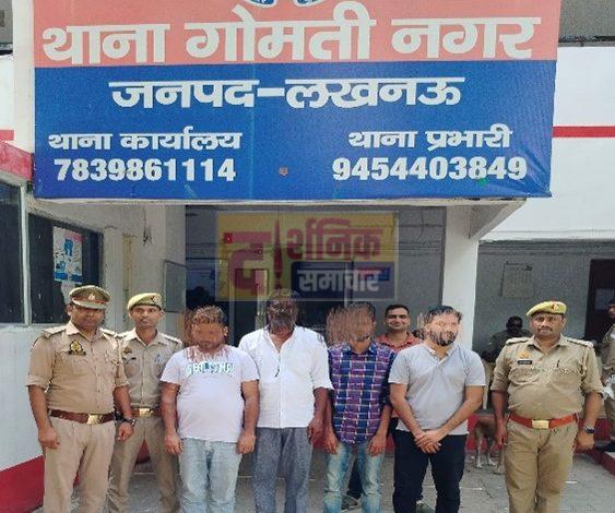 लखनऊ:– थाना गोमतीनगर पुलिस टीम द्वारा दिनांक 16.9.2024 समय करीब 10.50 बजे सिंगापुर माल के सामने कठौता हनीमैन ओवरब्रिज से छल कपट कर योजनाबद्ध तरीके से सस्ती जमीन दिलाने का झांसा देकर लोगों से धन वसूलने वाले संगठित गिरोह के एमडी समेत 04 शातिर अभियुक्तों को गिरफ्तार किया गया।