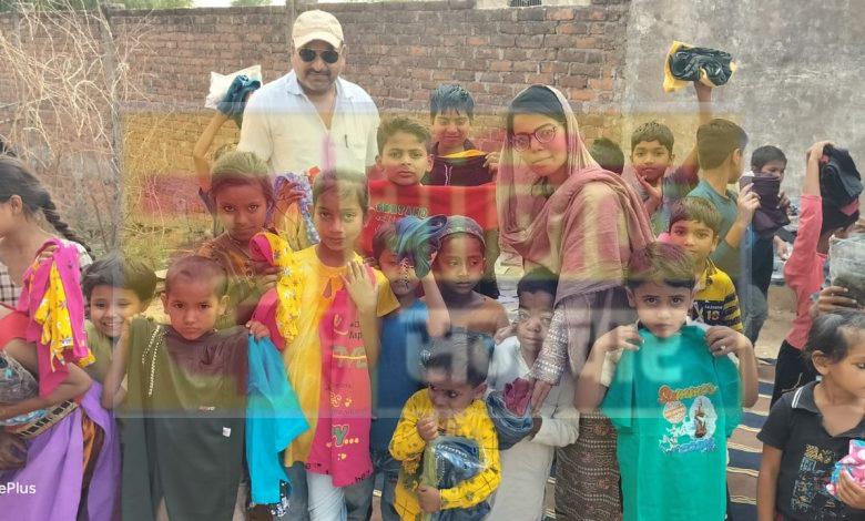 बच्चों को बांटे फाउंडेशन ने कपड़े व मिठाईयां