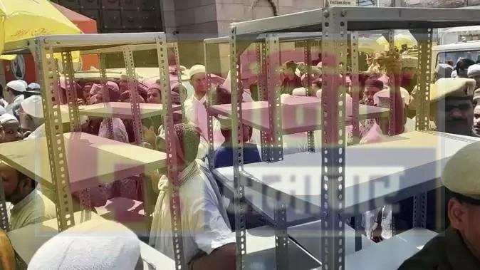 बताया जा रहा है कि शुकवार को लगभग एक हजार की संख्या में नमाजी पहुंचे थे। इस दौरान प्रशासन पूरी तरह से चौकन्ना था। पुलिस के ओर से चप्पे चप्पे पर नजर रखी जा रही रही। इसी बीच मुस्लिम पक्ष के लोग लोहे की कई आलमारी (जूता स्टैंड) लेकर पहुंच गए। जिसे पुलिस ने अंदर ले जाने से मना कर दिया।