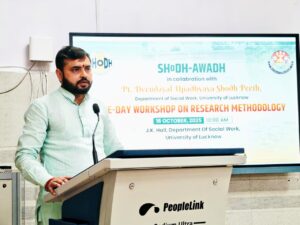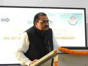 कार्यक्रम की अध्यक्षता कर रहे प्रो०राकेश द्विवेदी ने शोध के मानक एवं स्वयं से समाज की ओर शोध पद्धति की वैधता तथा वैधता के टूल्स एवं प्रकाशन पर बल दिया।