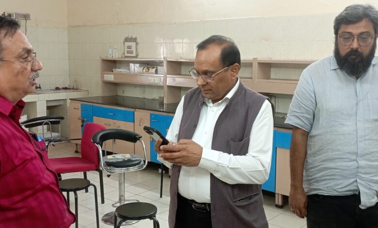 लखनऊ:- लखनऊ विश्वविद्यालय के कुलपति प्रो. जे.पी. सैनी ने आज बायोकेमिस्ट्री विभाग का औचक निरीक्षण किया। इस अवसर पर उन्होंने विभाग के शिक्षकों और छात्रों से संवाद स्थापित किया, प्रयोगशालाओं का दौरा किया तथा विभाग की भावी योजनाओं पर विस्तृत चर्चा की।
