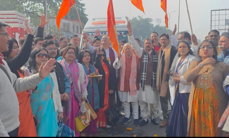 संकल्प यात्रा का शुभारंभ स्वदेशी जागरण मंच के राष्ट्रीय संगठक काश्मीरी लाल एवं अखिल भारतीय उद्योग व्यापार मण्डल के राष्ट्रीय अध्यक्ष पूर्व मंत्री उत्तर प्रदेश सरकार संदीप बंसल ने नारियल फोर्ड कर एवं भगवा ध्वज दिखा कर किया।