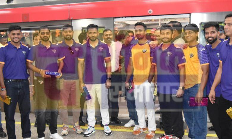 यूपी मेट्रो के निदेशक ऑपरेशन प्रशांत मिश्रा एवं निदेशक (रोलिंग स्टॉक) नवीन कुमार ने लखनऊ फैल्कन्स की टीम का हजरतगंज मेट्रो स्टेशन पर स्वागत किया एवं यूपी टी-20 प्रतियोगिता के लिए शुभकामनाएं दी।