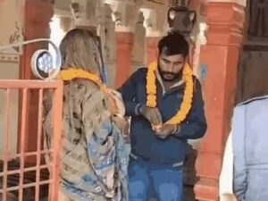 प्रतापगढ़:- उत्तर प्रदेश के प्रतापगढ़ जिले में एक अनोखा मामला सामने आया शादी के 10 साल बाद पति आशीष तिवारी ने अपनी पत्नी पिंकी की शादी उसके प्रेमी अमित शर्मा से करवा दी। पति और बच्चों की मौजूदगी में ही गांव के मंदिर में दोनों ने एक-दूसरे के गले में वरमाला डाली। शादी के बाद सबके सामने पत्नी ने बॉयफ्रेंड के पैर छुए।