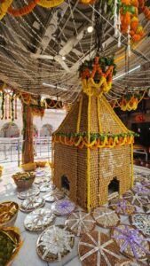 श्री काशी विश्वनाथ धाम में आज के इस पावन अवसर पर भगवान श्री विश्वेश्वर महादेव का श्रृंगार 21 क्विंटल विविध प्रकार की मिष्ठानों से किया गया। यह मिष्ठान धाम से जुड़े विभिन्न प्रतिष्ठानों से प्राप्त हुआ। श्रृंगार हेतु जिन प्रमुख मिष्ठानों का उपयोग किया गया उनमें छेना, बूंदी लड्डू, काजू बर्फी, मेवा लड्डू तथा अन्य पारंपरिक मिठाइयाँ प्रमुख रूप से सम्मिलित थीं। पूरे धाम परिसर को पुष्पों, दीपों और सुगंधित धूप से अलंकृत किया गया, जिससे सम्पूर्ण वातावरण भक्ति और उल्लास से परिपूर्ण हो उठा।