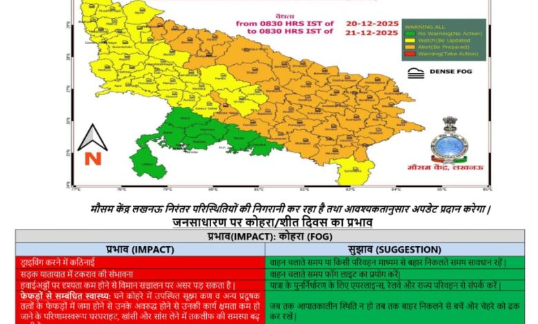 उत्तर प्रदेश का ज्यादातर हिस्सा ठंड के साथ कोहरे के साए में लिपटा हुआ है।