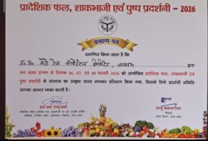 लखनऊ:- उत्तर प्रदेश मेट्रो रेल कॉरपोरेशन (यूपी मेट्रो) ने जन भवन प्रांगण, लखनऊ में 06, 07 एवं 08 फरवरी 2026 को आयोजित 57वीं प्रादेशिक फल, शाकभाजी एवं पुष्प प्रदर्शनी में संस्थान का उत्कृष्ट स्टॉल लगाकर सहभागिता की। प्रदर्शनी समिति द्वारा यूपी मेट्रो की नवोन्मेषी प्रस्तुति, आकर्षक पुष्प सज्जा एवं सतत पर्यावरणीय प्रयासों के लिए प्रमाण-पत्र प्रदान कर सम्मानित किया गया। उल्लेखनीय है कि यूपी मेट्रो को पूर्व वर्षों में भी इस प्रदर्शनी में अपनी उत्कृष्ट सहभागिता, रचनात्मक हॉर्टीकल्चर डिजाइन एवं हरित पहलों के लिए लगातार सम्मान एवं सराहना मिलती रही है, जो संस्थान की निरंतर गुणवत्ता और प्रतिबद्धता को दर्शाता है।