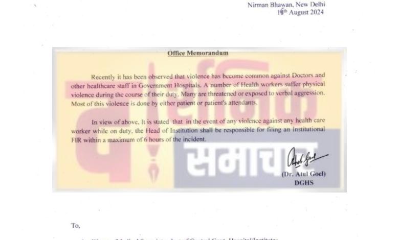 स्वास्थ्य मंत्रालय ने कहा कि अगर डॉक्टर्स पर हमला या हिंसा होती है तो 6 घंटे के अंदर संस्थानों को संबंधित मामले के खिलाफ एफआईआर दर्ज करवानी होगी। स्वास्थ्य मंत्रालय के मुताबिक, डॉक्टर्स पर अगर हमले होते हैं तो 6 घंटे के अंदर एफआईआर दर्ज की जाएगी। स्वास्थ्य मंत्रालय ने सभी स्वास्थ्य संस्थानों को मेमो भेज दिया है।