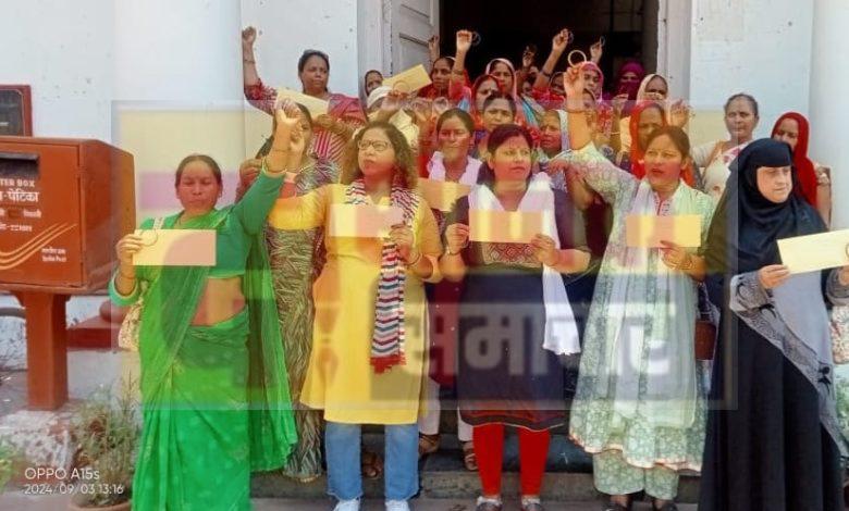 IIT BHU की छात्रा के साथ दुष्कर्म के आरोपी भाजपा पदाधिकारियों की जमानत के खिलाफ ज़िला/महानगर महिला कांग्रेस ,वाराणसी द्वारा विरोध प्रदर्शन हुआ प्रधानमंत्री को भेजी गई चूड़ीया –